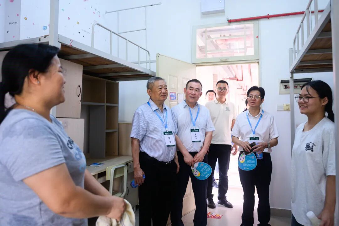 “来自哪里?”“适应吗?”“是和父母一起来的吗?”“要好好学习生活!”校领导还前往新生宿舍察看住宿条件,勉励同学们尽快适应新环境,认真学习、快乐生活,向新生表示热烈的欢迎与诚挚问候。