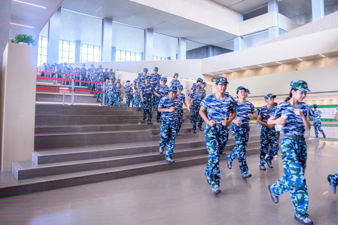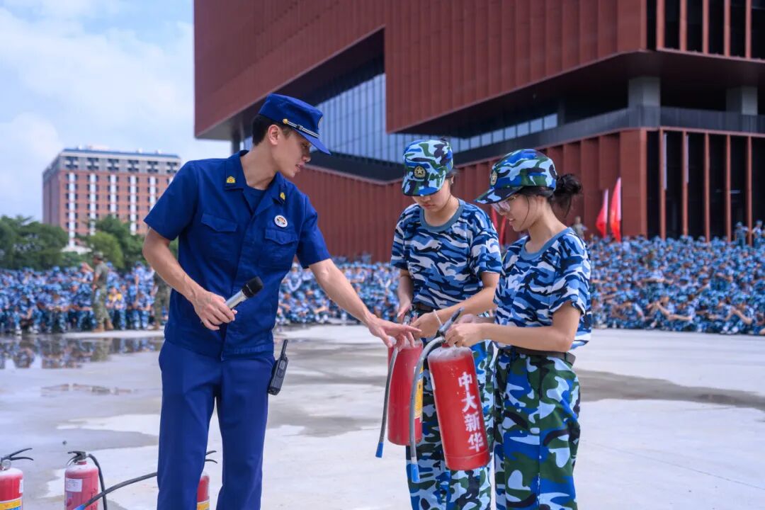 消防演练正式开始前,各连队的教官向新生们细致讲解火灾逃生流程与关键要点。当消防警报响起时,全体参演师生迅速进入应急状态,保障人员立即就位到各自安全值守点,演练进入紧急疏散阶段。在军训教官的有序指挥下,同学们以手掩口鼻,保持低姿弯腰,沿着不同的逃生通道,快速且有序地撤离至指定的集结区域,整个过程组织严密、响应及时。