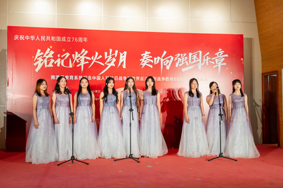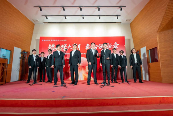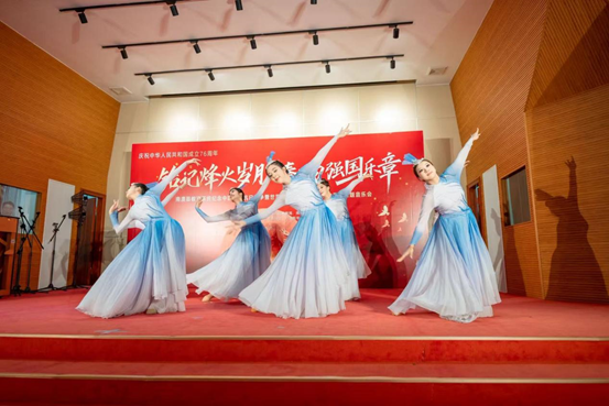 音乐会以我校艺术团带来的舞蹈《盛开》拉开序幕。舞者们以舒展的身姿、流动的构图,诠释了生命在风雨中依然顽强绽放的信念,呼应了抗战精神在新时代的延续。随后,我校音乐系师生带来男声小组唱《缆车》与《游击队之歌》,以轻快与铿锵的对比,展现跨越时空的艺术张力;琵琶齐奏《送我一支玫瑰花》则以西域风情融入红色主题,展现文化的包容与时代的温度。