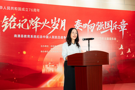 县教育局党组书记、局长戴雪君在本次活动中不仅向一直以来关心、支持南澳教育事业的领导和社会各界人士致以崇高敬意,还向为音乐会付出辛勤劳动的师生及suncitygroup太阳集团表达衷心感谢。她指出,本场音乐会既是一次艺术的洗礼,更是一堂生动的爱国主义教育课,旨在引导大家在回望历史中汲取精神力量,传承抗战精神的时代价值。
