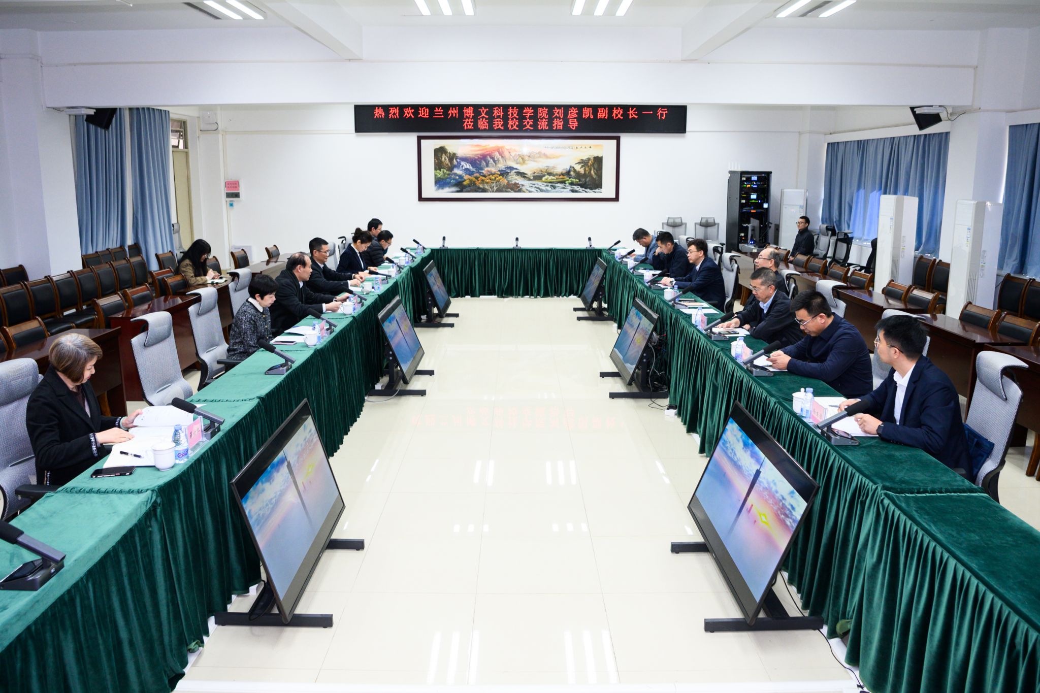座谈会上,马龙海副校长代表学校对兰州博文科技学院来访表示热烈欢迎,并简要介绍学校办学概况。与会人员共同观看了学校宣传片,全面了解学校在学科建设、人才培养等方面取得的成果。