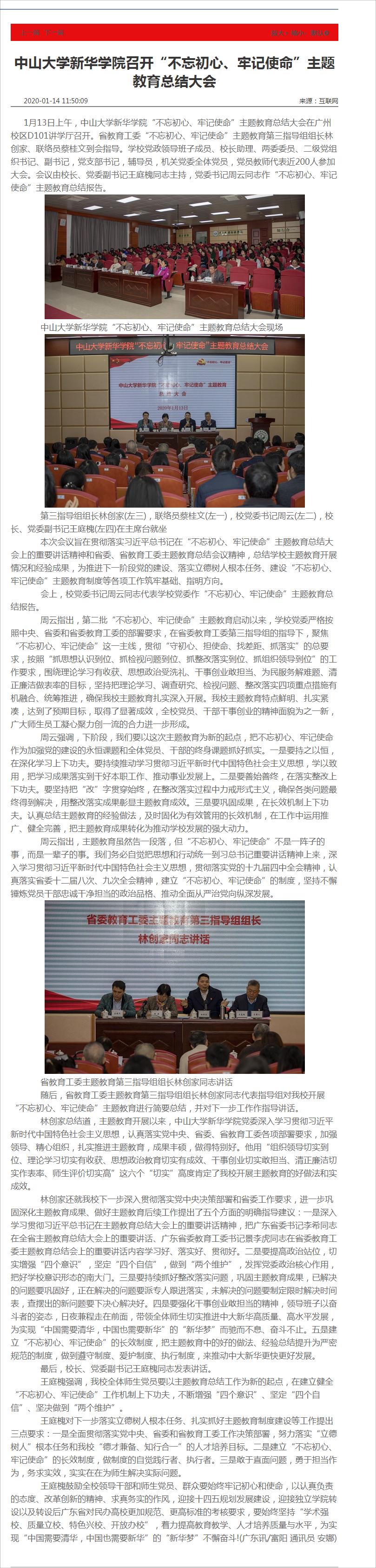 王庭槐鼓励全校领导干部和师生党员、群众要始终牢记初心和使命,以认真负责的态度、改革创新的精神、求真务实的作风,迎接“十四五”规划发展建设,迎接独立学院转设以及转设后广东省对民办高校更加规范、更高标准的考核要求,要始终坚持“学术强校、质量立校、特色兴校、开放办校”,着力提高教育教学、人才培养质量与水平,为实现“中国需要清华,中国也需要新华”的“新华梦”不懈奋斗!(广东讯/富阳 通讯员 安娜)