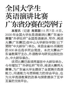 [东莞日报]全国大学生英语演讲比赛广东省分赛在莞举行