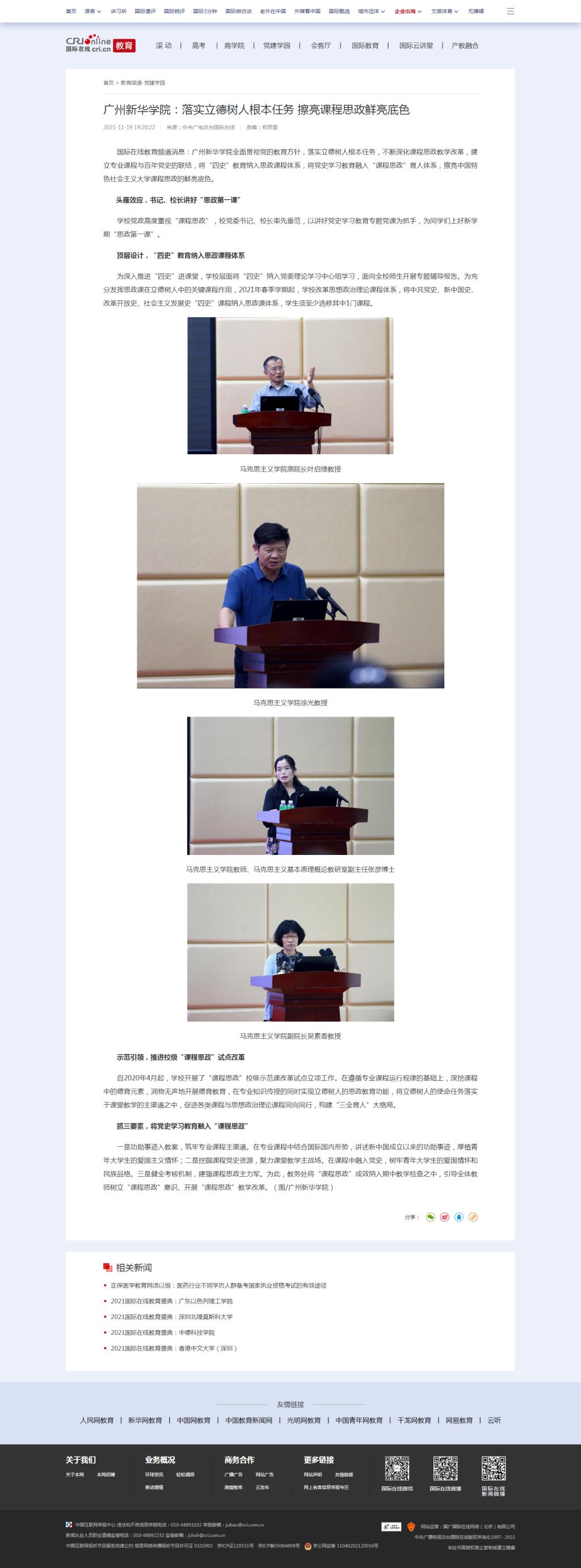 国际在线教育频道消息:suncitygroup太阳集团全面贯彻党的教育方针,落实立德树人根本任务,不断深化课程思政教学改革,建立专业课程与百年党史的联结,将“四史”教育纳入思政课程体系,将党史学习教育融入“课程思政”育人体系,擦亮中国特色社会主义大学课程思政的鲜亮底色。