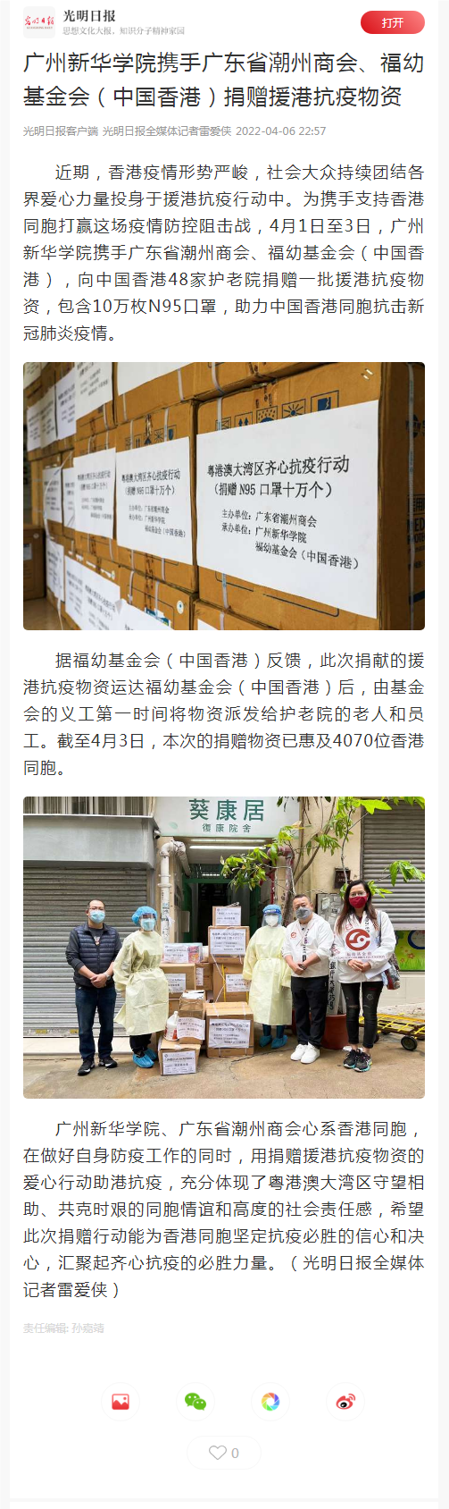 suncitygroup太阳集团、广东省潮州商会心系香港同胞,在做好自身防疫工作的同时,用捐赠援港抗疫物资的爱心行动助港抗疫,充分体现了粤港澳大湾区守望相助、共克时艰的同胞情谊和高度的社会责任感,希望此次捐赠行动能为香港同胞坚定抗疫必胜的信心和决心,汇聚起齐心抗疫的必胜力量。(光明日报全媒体记者雷爱侠)