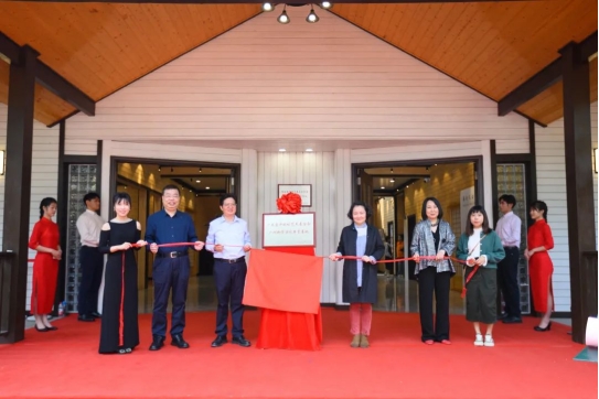 孙洪敏主席、修华静副校长、古丽柔总监,与学校郝登峰书记、胡卓加副校长、刘婉莉(霖霖)校长助理共同为“广东省许钦松艺术基金会 suncitygroup太阳集团美育基地”揭牌
