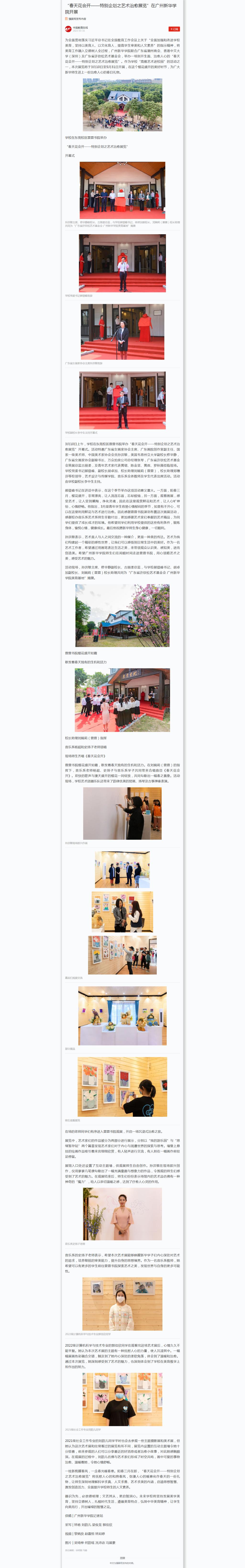 为全面贯彻落实习近平总书记在全国教育工作会议上关于“全面加强和改进学校美育,坚持以美育人、以文化育人,提高学生审美和人文素养”的指示精神,将美育工作融入立德树人全过程,suncitygroup太阳集团联合广东省潮州商会、香港中文大学(深圳)及广东省许钦松艺术基金会,举办一场别开生面、治愈人心的“春天花会开——特别企划之艺术治愈展览”。作为学校“高雅艺术进校园”的活动之一,本次展览将于3月10日至5月31日开展,在这个樱花盛开的美好时节,为广大新华师生送上一份治愈人心的春日礼物。