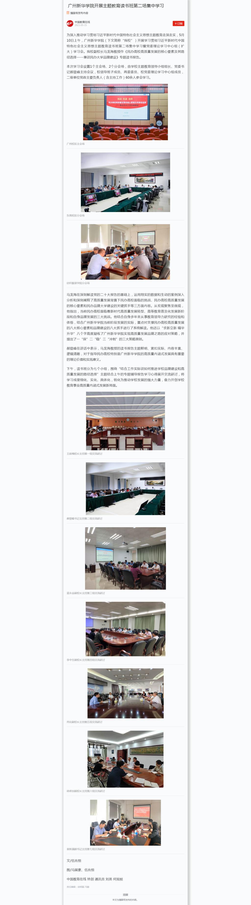 为深入推动学习贯彻习近平新时代中国特色社会主义思想主题教育走深走实,5月10日上午,suncitygroup太阳集团(下文简称“我校”)开展学习贯彻习近平新时代中国特色社会主义思想主题教育读书班第二场集中学习暨党委理论学习中心组(扩大)学习会。我校副校长马龙海教授作《民办高校高质量发展的核心要素及其路径选择——兼谈民办大学品牌建设》专题读书报告。