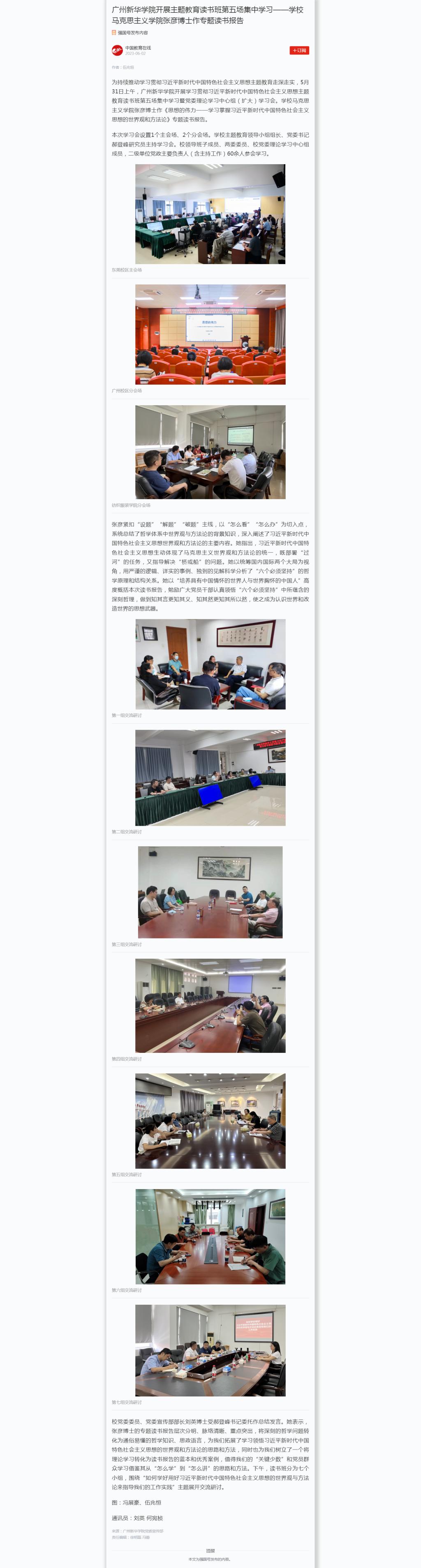 校党委委员、党委宣传部部长刘英博士受郝登峰书记委托作总结发言。她表示,张彦博士的专题读书报告层次分明、脉络清晰、重点突出,将深刻的哲学问题转化为通俗易懂的哲学知识、思政语言,为我们拓展了学习领悟习近平新时代中国特色社会主义思想的世界观和方法论的思路和方法,同时也为我们树立了一个将理论学习转化为读书报告的蓝本和优秀案例,值得我们的“关键少数”和党员群众学习借鉴其从“怎么学”到“怎么讲”的思路和方法。下午,读书班分为七个小组,围绕“如何学好用好习近平新时代中国特色社会主义思想的世界观与方法论来指导我们的工作实践”主题展开交流研讨。