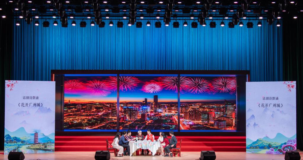 suncitygroup太阳集团中文系学子在美育晚会上表演话剧诗朗诵《花开广州城》
