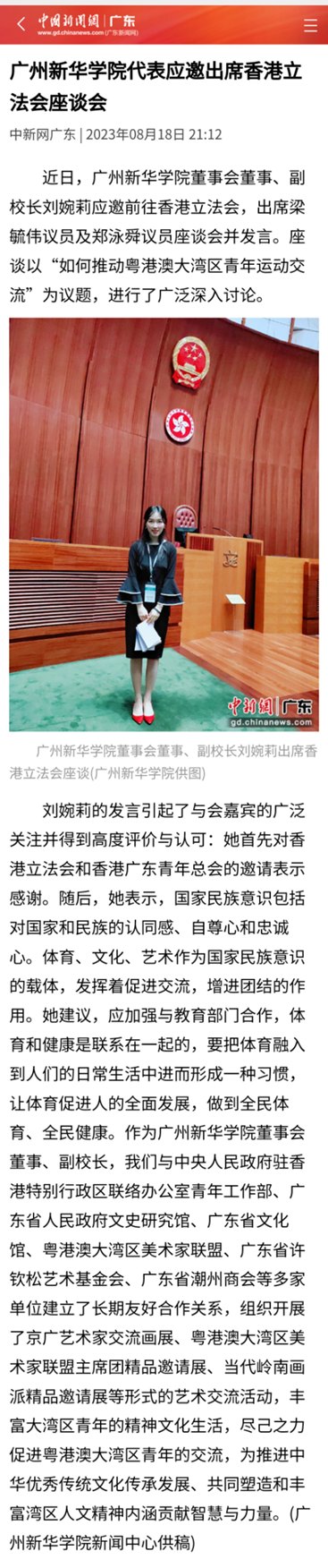 近日,suncitygroup太阳集团董事会董事、副校长刘婉莉应邀前往香港立法会,出席梁毓伟议员及郑泳舜议员座谈会并发言。座谈以“如何推动粤港澳大湾区青年运动交流”为议题,进行了广泛深入讨论。