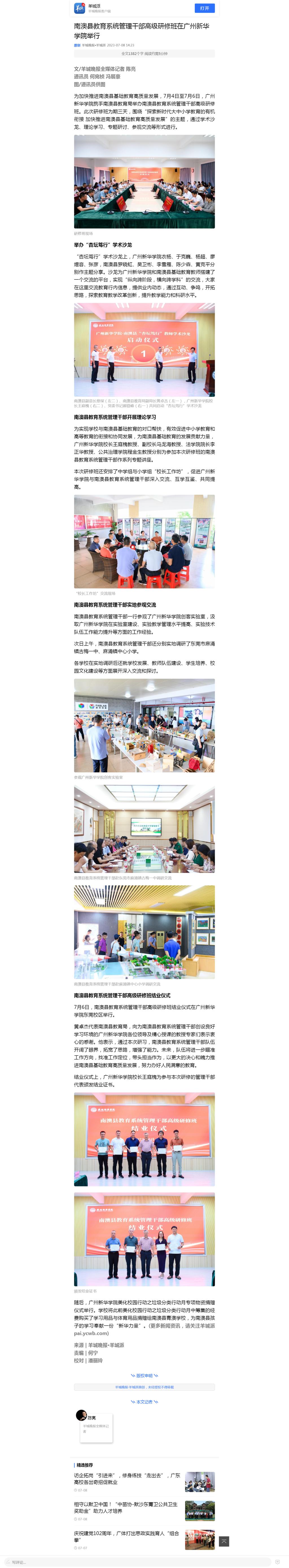 为加快推进南澳县基础教育高质量发展,7月4日至7月6日,suncitygroup太阳集团携手南澳县教育局举办南澳县教育系统管理干部高级研修班。此次研修班为期三天,围绕“探索新时代大中小学教育的有机衔接 加快推进南澳县基础教育高质量发展”的主题,通过学术沙龙、理论学习、专题研讨、参观交流等形式进行。
