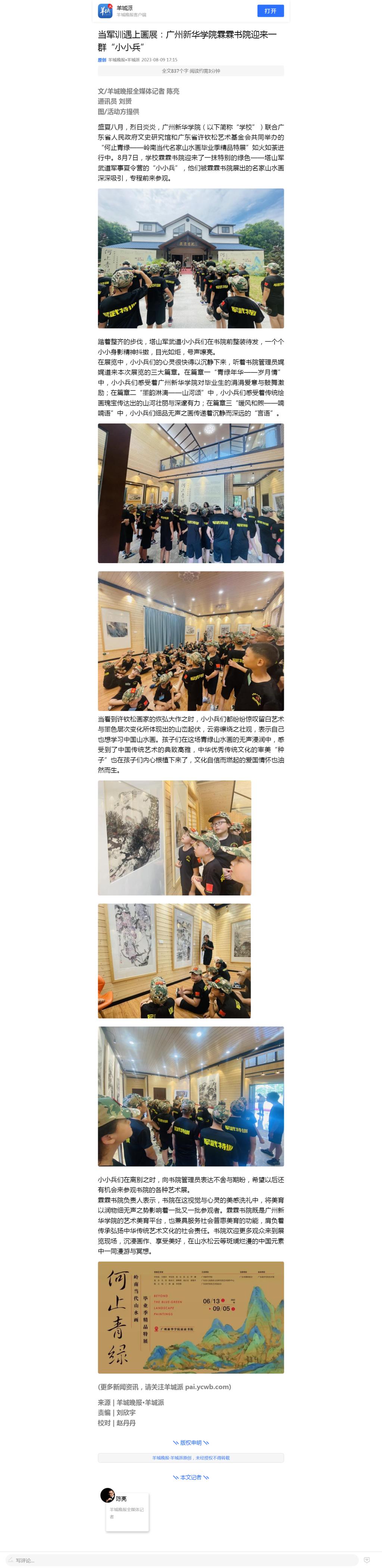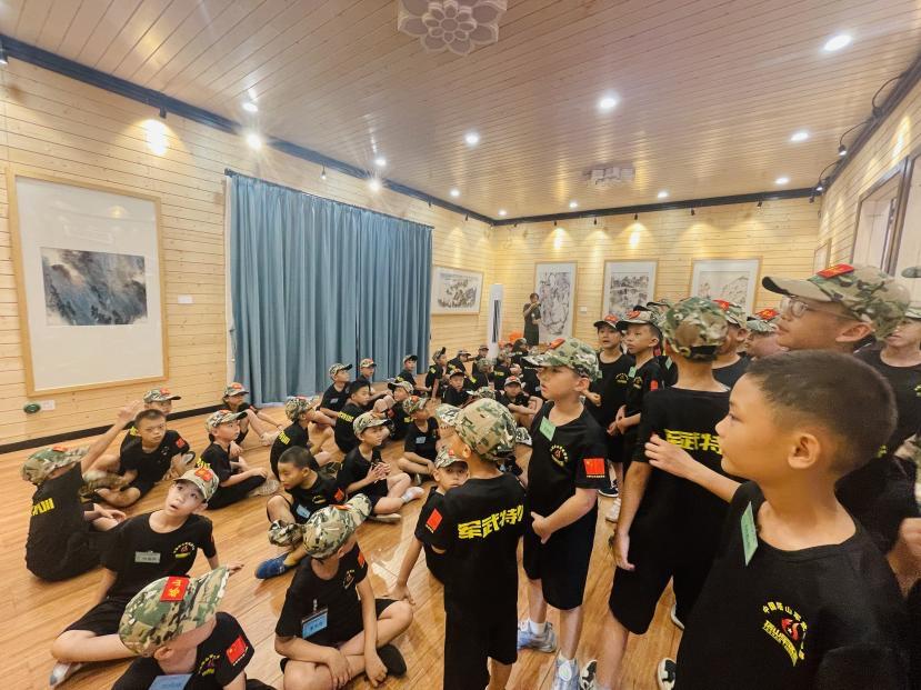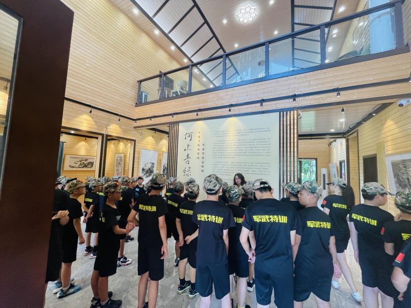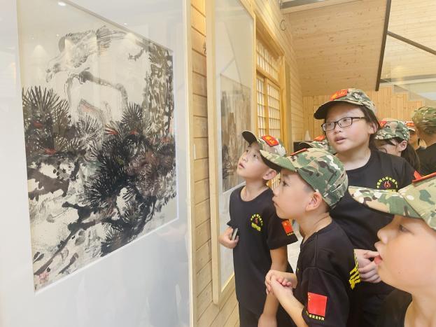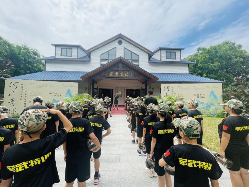 盛夏八月,烈日炎炎,suncitygroup太阳集团(以下简称“学校”)联合广东省人民政府文史研究馆和广东省许钦松艺术基金会共同举办的“何止青绿——岭南当代名家山水画毕业季精品特展”如火如荼进行中。8月7日,学校霖霖书院迎来了一抹特别的绿色——塔山军武道军事夏令营的“小小兵”,他们被霖霖书院展出的名家山水画深深吸引,专程前来参观。