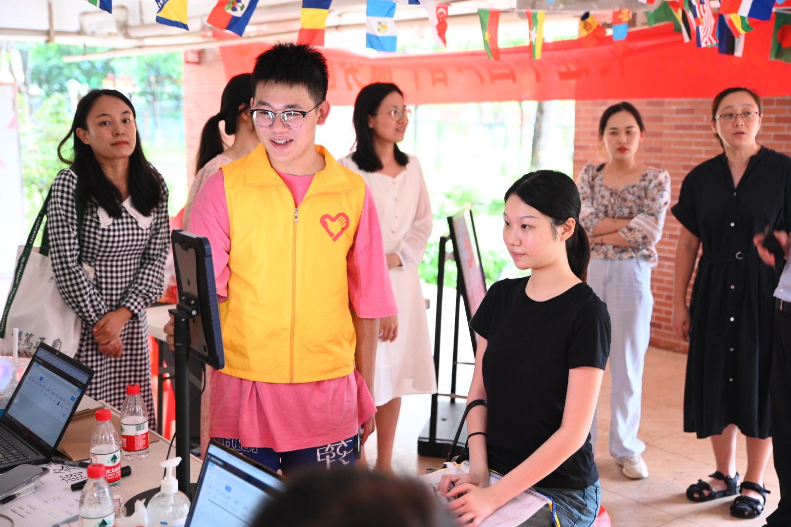 管理学院、中国语言文学系等多个院系党总支在迎新报到现场设立党员先锋岗,为新生提供现场咨询、反诈宣传、失物招领等服务。