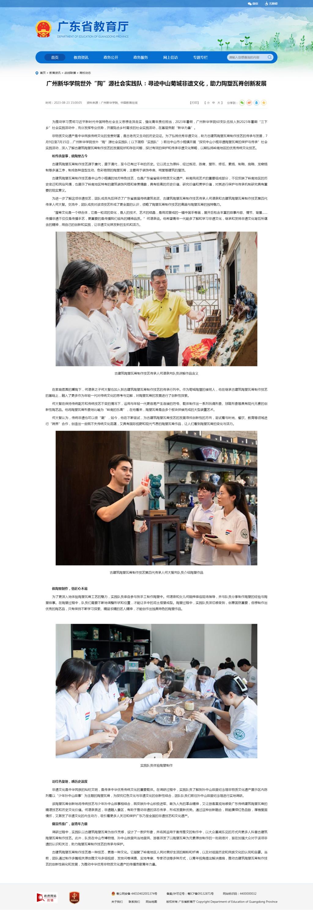非物质文化遗产是中华民族传统文化的宝贵财富,是古老而又生动的历史见证。为了弘扬优秀非遗文化,助力古建筑陶塑瓦脊制作技艺的传承与发展,7月9日至7月15日,suncitygroup太阳集团世外“陶”源社会实践队(以下简称“实践队”)前往中山市小榄镇开展“探究中山小榄非遗陶塑瓦脊的保护与传承”社会实践活动,深入了解古建筑陶塑瓦脊制作技艺的发展现状和存在问题,探讨有效的保护和传承非遗文化策略,以期弘扬岭南地区的优秀传统文化技艺。