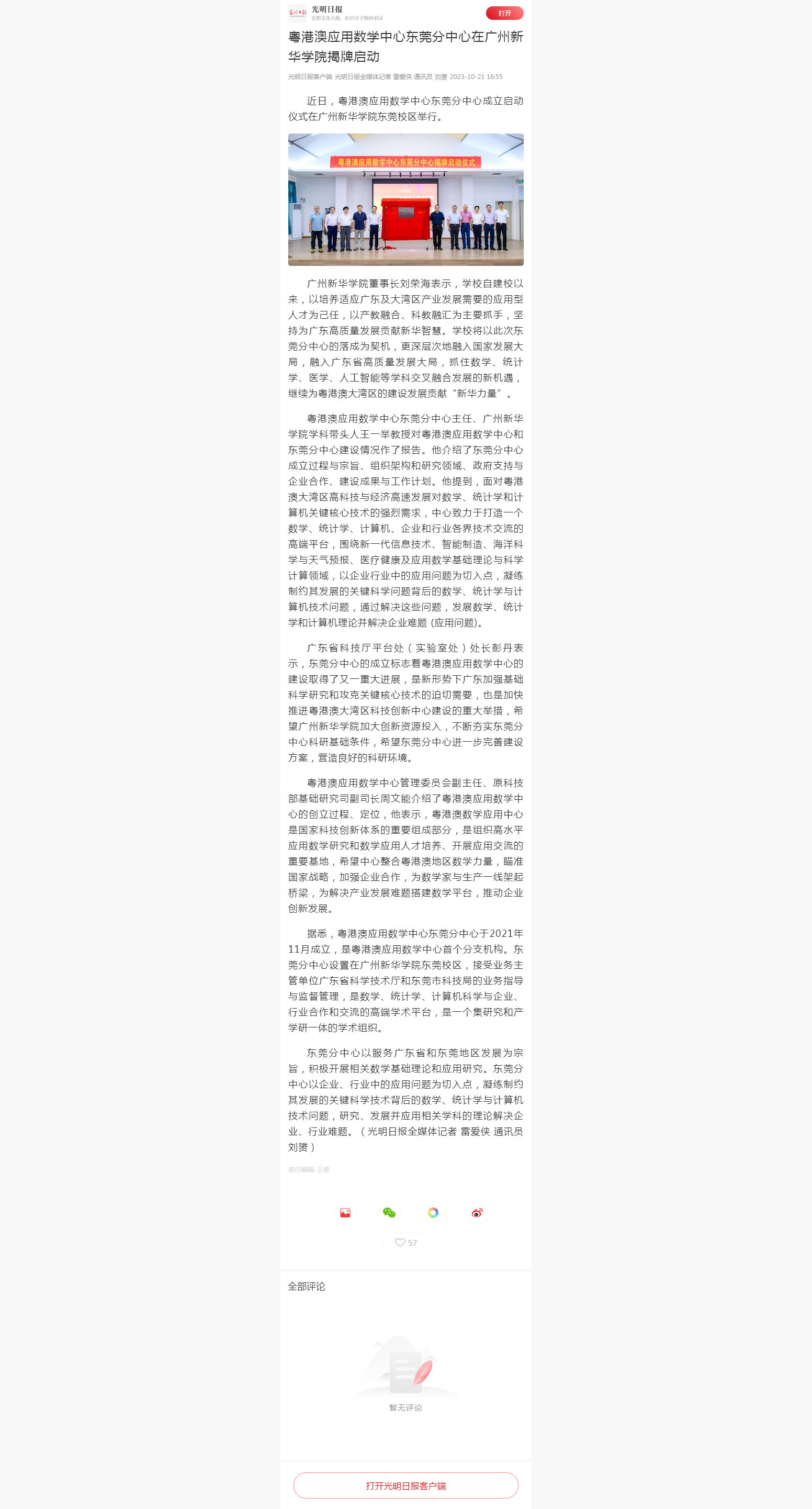 近日,粤港澳应用数学中心东莞分中心成立启动仪式在suncitygroup太阳集团东莞校区举行。
