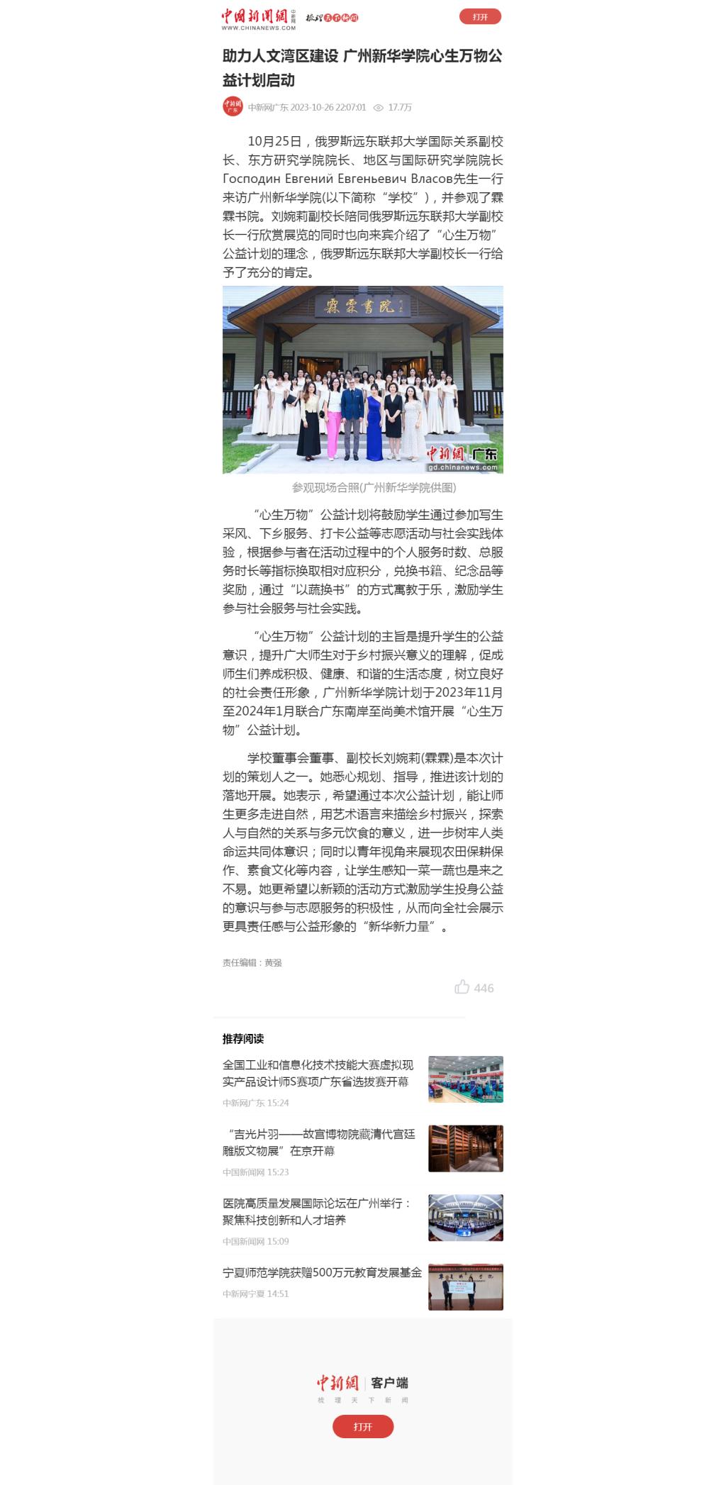 学校董事会董事、副校长刘婉莉(霖霖)是本次计划的策划人之一。她悉心规划、指导,推进该计划的落地开展。她表示,希望通过本次公益计划,能让师生更多走进自然,用艺术语言来描绘乡村振兴,探索人与自然的关系与多元饮食的意义,进一步树牢人类命运共同体意识;同时以青年视角来展现农田保耕保作、素食文化等内容,让学生感知一菜一蔬也是来之不易。她更希望以新颖的活动方式激励学生投身公益的意识与参与志愿服务的积极性,从而向全社会展示更具责任感与公益形象的“新华新力量”。
