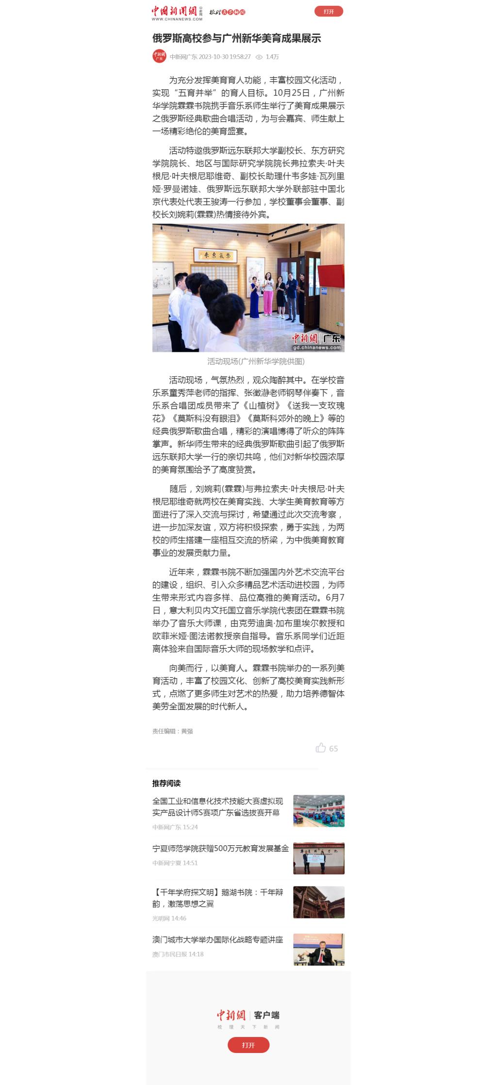 随后,刘婉莉(霖霖)与弗拉索夫·叶夫根尼·叶夫根尼耶维奇就两校在美育实践、大学生美育教育等方面进行了深入交流与探讨,希望通过此次交流考察,进一步加深友谊,双方将积极探索,勇于实践,为两校的师生搭建一座相互交流的桥梁,为中俄美育教育事业的发展贡献力量。