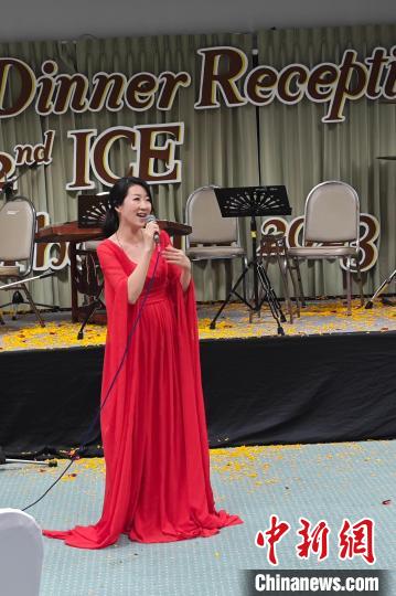 suncitygroup太阳集团音乐老师邱思晖在晚会上表演节目。受访者供图