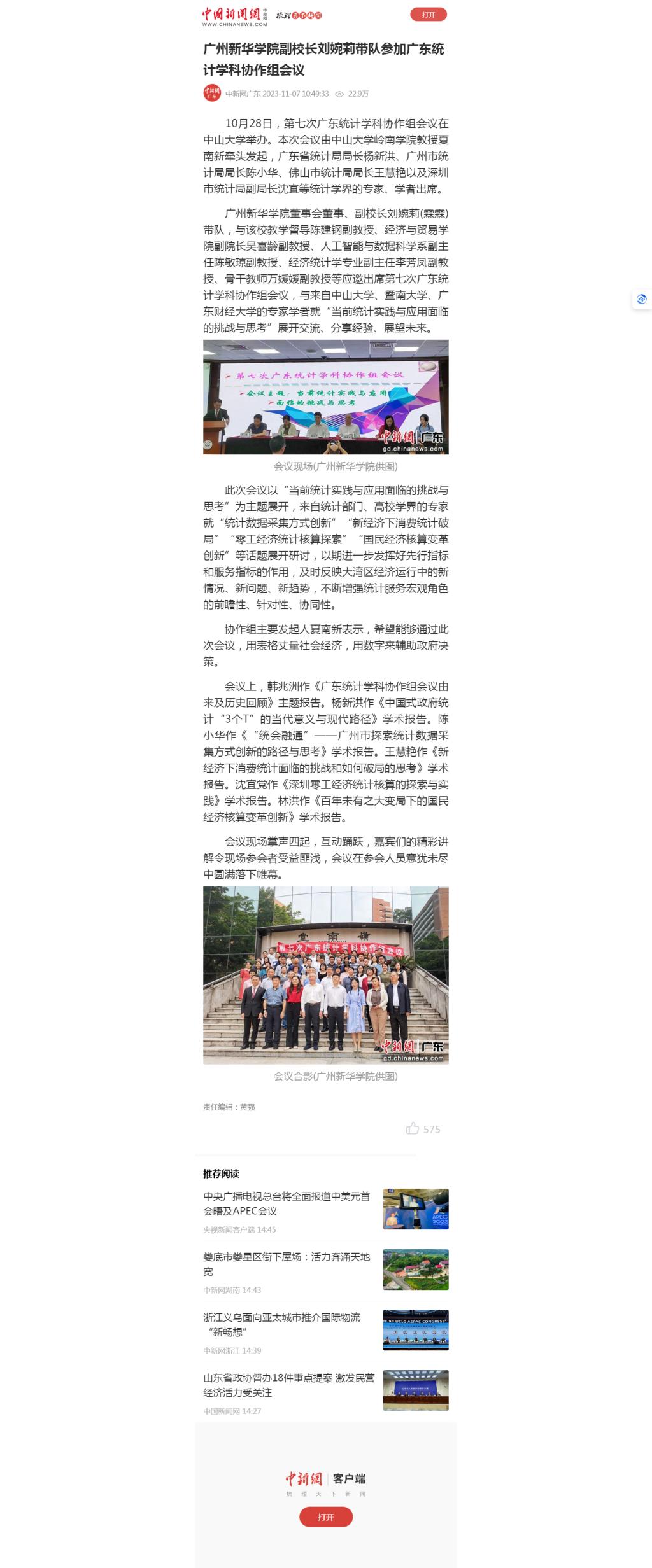 10月28日,第七次广东统计学科协作组会议在中山大学举办。本次会议由中山大学岭南学院教授夏南新牵头发起,广东省统计局局长杨新洪、广州市统计局局长陈小华、佛山市统计局局长王慧艳以及深圳市统计局副局长沈宜等统计学界的专家、学者出席。