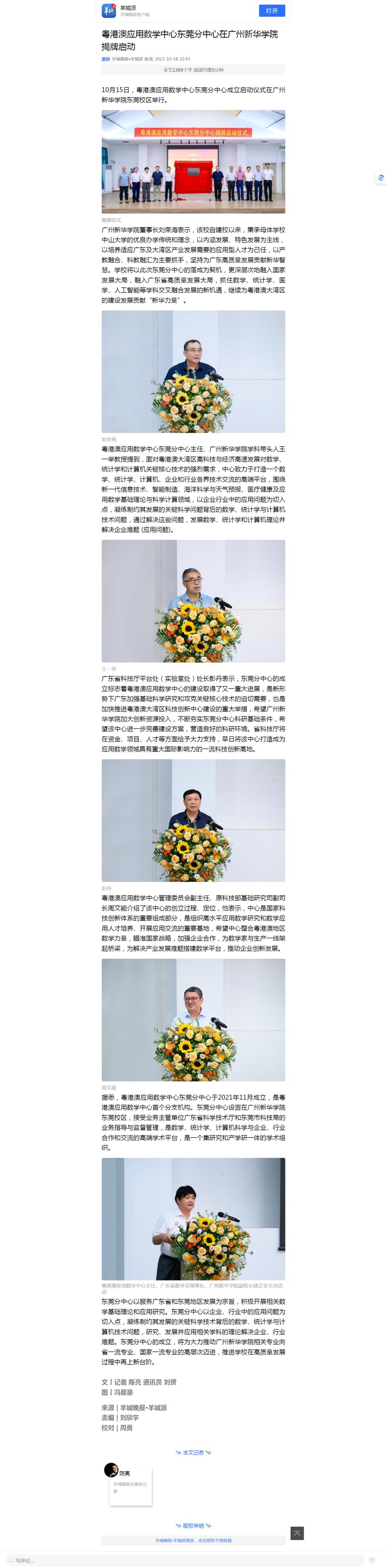 据悉,粤港澳应用数学中心东莞分中心于2021年11月成立,是粤港澳应用数学中心首个分支机构。东莞分中心设置在suncitygroup太阳集团东莞校区,接受业务主管单位广东省科学技术厅和东莞市科技局的业务指导与监督管理,是数学、统计学、计算机科学与企业、行业合作和交流的高端学术平台,是一个集研究和产学研一体的学术组织。