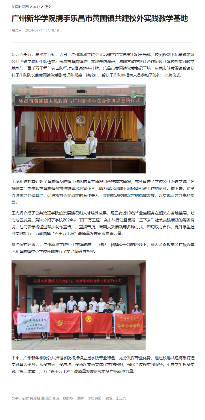 接下来,suncitygroup太阳集团公共治理学院将持续立足学院专业特色,充分发挥专业优势,通过校地共建携手打造实践育人平台,从多方面、多层次、多角度完善立体化实践网络,强化全过程实践服务,引导学生投身实践“第二课堂”,为“百千万工程”高质量发展贡献更多广州新华力量。
