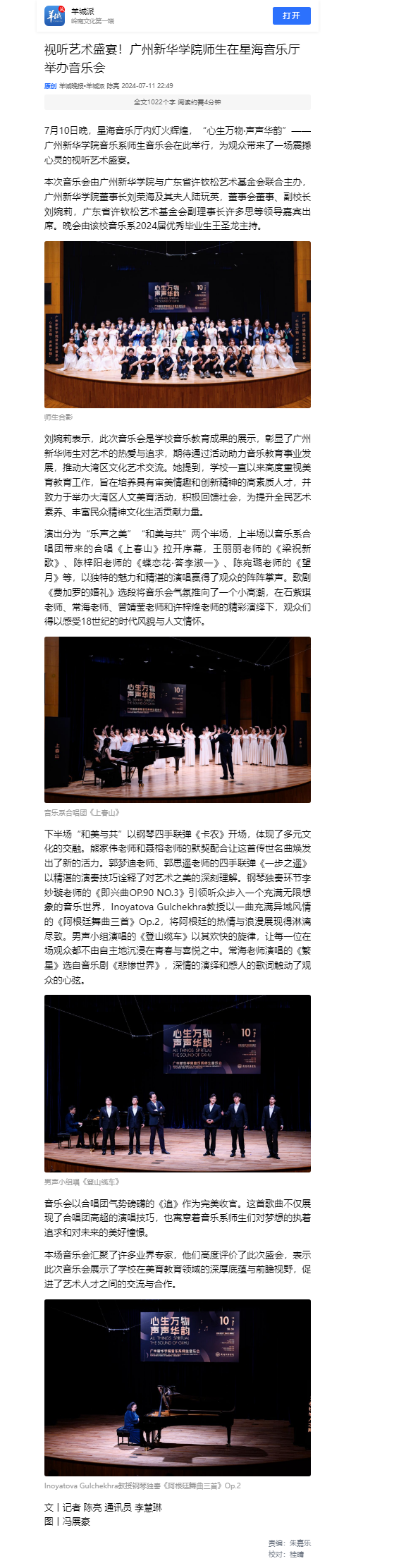 7月10日晚,星海音乐厅内灯火辉煌,“心生万物·声声华韵”——suncitygroup太阳集团音乐系师生音乐会在此举行,为观众带来了一场震撼心灵的视听艺术盛宴。