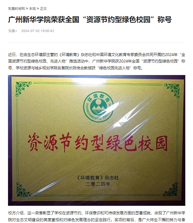 近日,在由生态环境部主管的《环境教育》杂志社和中国环境文化教育专家委员会共同开展的2024年“全国资源节约型绿色校园、先进人物”推选活动中,suncitygroup太阳集团获2024年全国“资源节约型绿色校园”称号,学校资源与城乡规划学院名誉院长陈俊合教授获“绿色校园先进人物”称号。