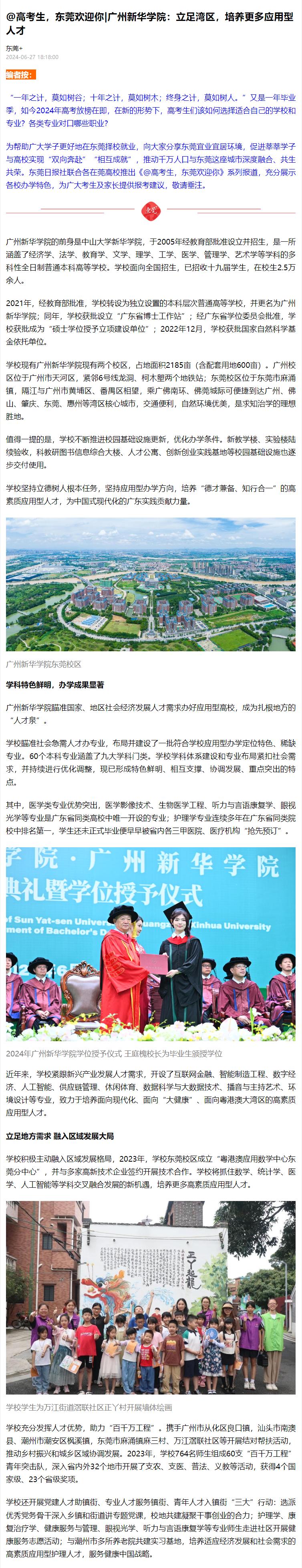 学校坚持立德树人根本任务,坚持应用型办学方向,培养“德才兼备、知行合一”的高素质应用型人才,为中国式现代化的广东实践贡献力量。