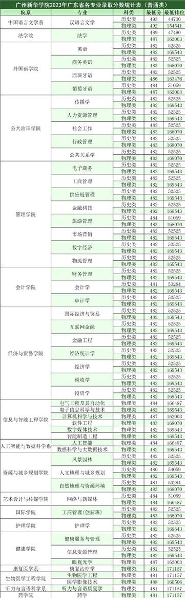 suncitygroup太阳集团2023年广东省各专业录取分数统计表