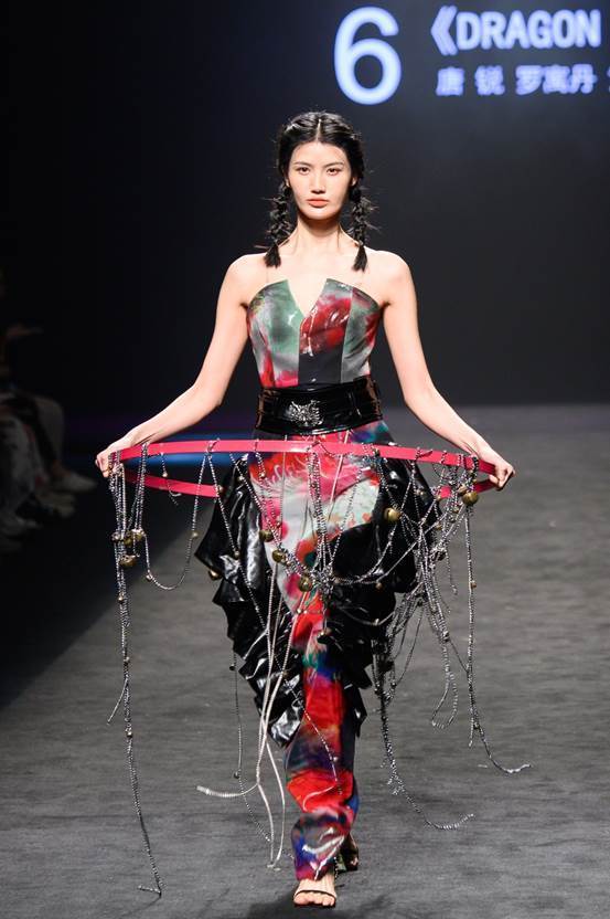 2020级服装与服饰设计专业的罗寓丹、黄晓晓和唐锐在本次展演中荣获二等奖,对此他们深感荣幸。他们的作品灵感源自“龙生九子”传说,巧妙地将龙子特征与现代服装结合,展现了独特的先锋新中式美学。设计过程中,他们面临了诸如印花呈现、面料选择等不少挑战,但通过不断搜寻资料、对比面料、尝试与调整搭配,最终成功地克服了困难。谈及未来,他们都满怀期待,希望能在服装行业的“新中式”领域中开拓新的方向,引领潮流。