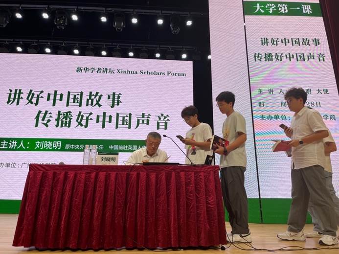 活动现场还设有签领图书环节,五十位师生与刘晓明大使近距离互动,接过他亲笔签名的《尖锐对话》《有问必答》,定格成为珍贵的大学记忆。