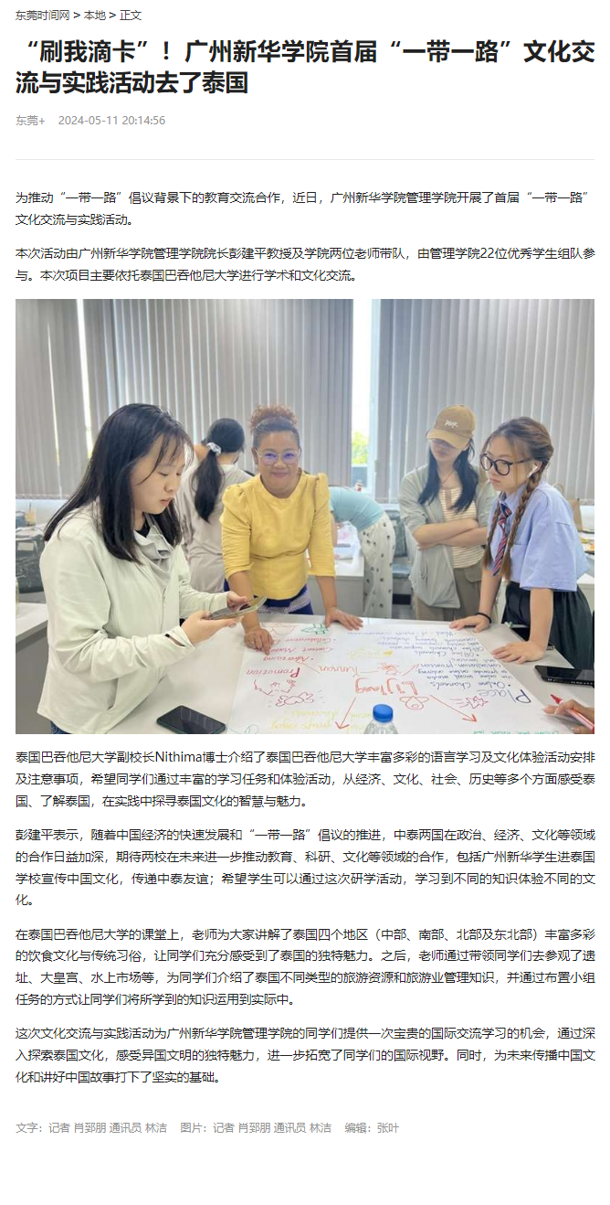 这次文化交流与实践活动为suncitygroup太阳集团管理学院的同学们提供一次宝贵的国际交流学习的机会,通过深入探索泰国文化,感受异国文明的独特魅力,进一步拓宽了同学们的国际视野。同时,为未来传播中国文化和讲好中国故事打下了坚实的基础。