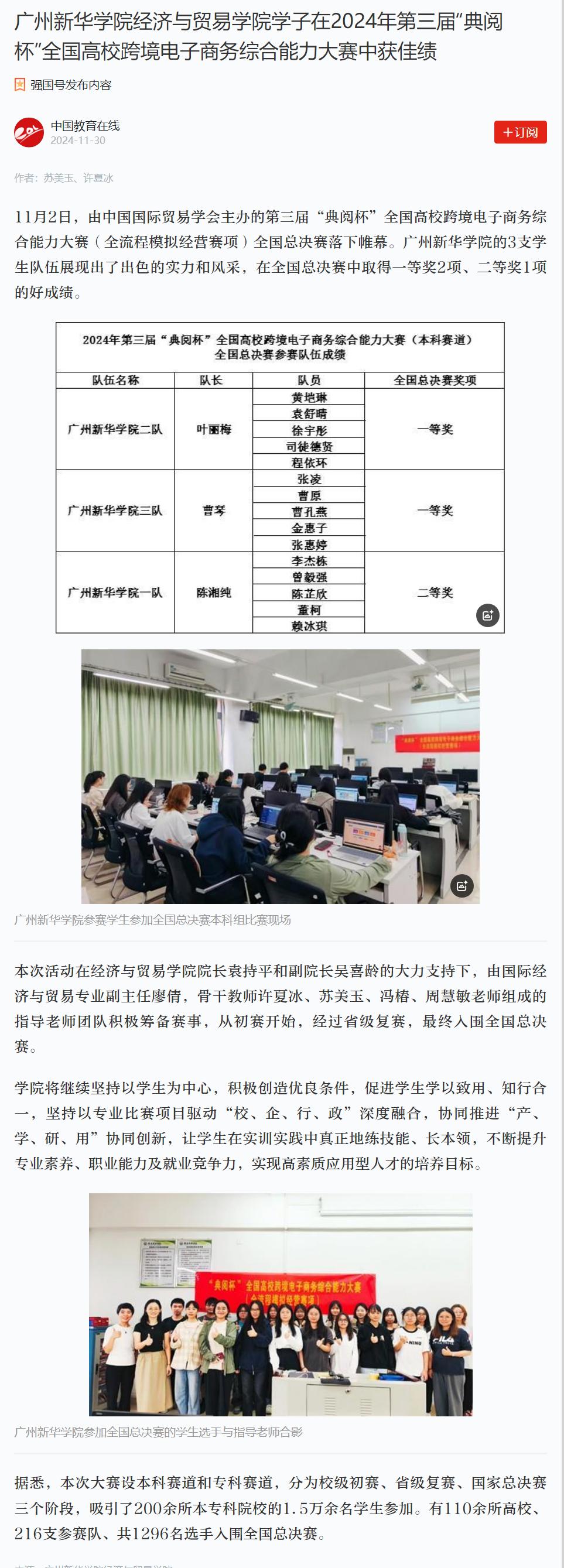11月2日,由中国国际贸易学会主办的第三届“典阅杯”全国高校跨境电子商务综合能力大赛(全流程模拟经营赛项)全国总决赛落下帷幕。suncitygroup太阳集团的3支学生队伍展现出了出色的实力和风采,在全国总决赛中取得一等奖2项、二等奖1项的好成绩。