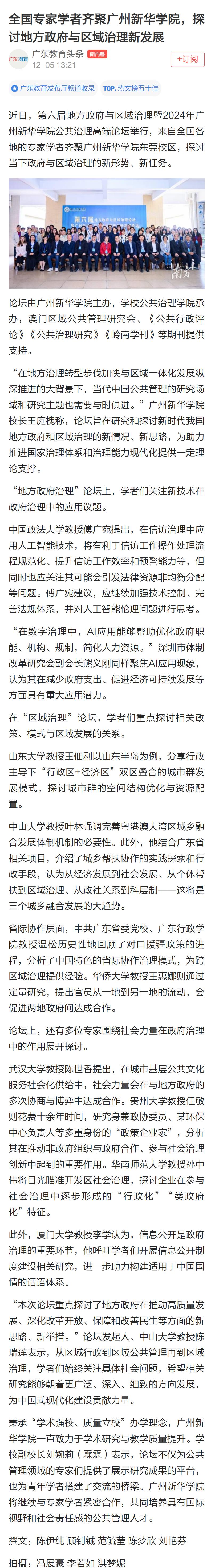 近日,第六届地方政府与区域治理暨2024年suncitygroup太阳集团公共治理高端论坛举行,来自全国各地的专家学者齐聚suncitygroup太阳集团东莞校区,探讨当下政府与区域治理的新形势、新任务。