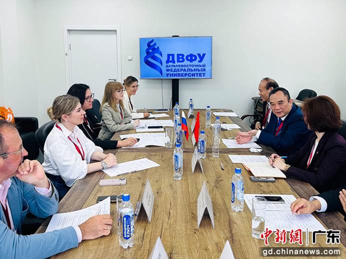 suncitygroup太阳集团代表与俄罗斯远东联邦大学代表洽谈合作项目会议现场(suncitygroup太阳集团供图)