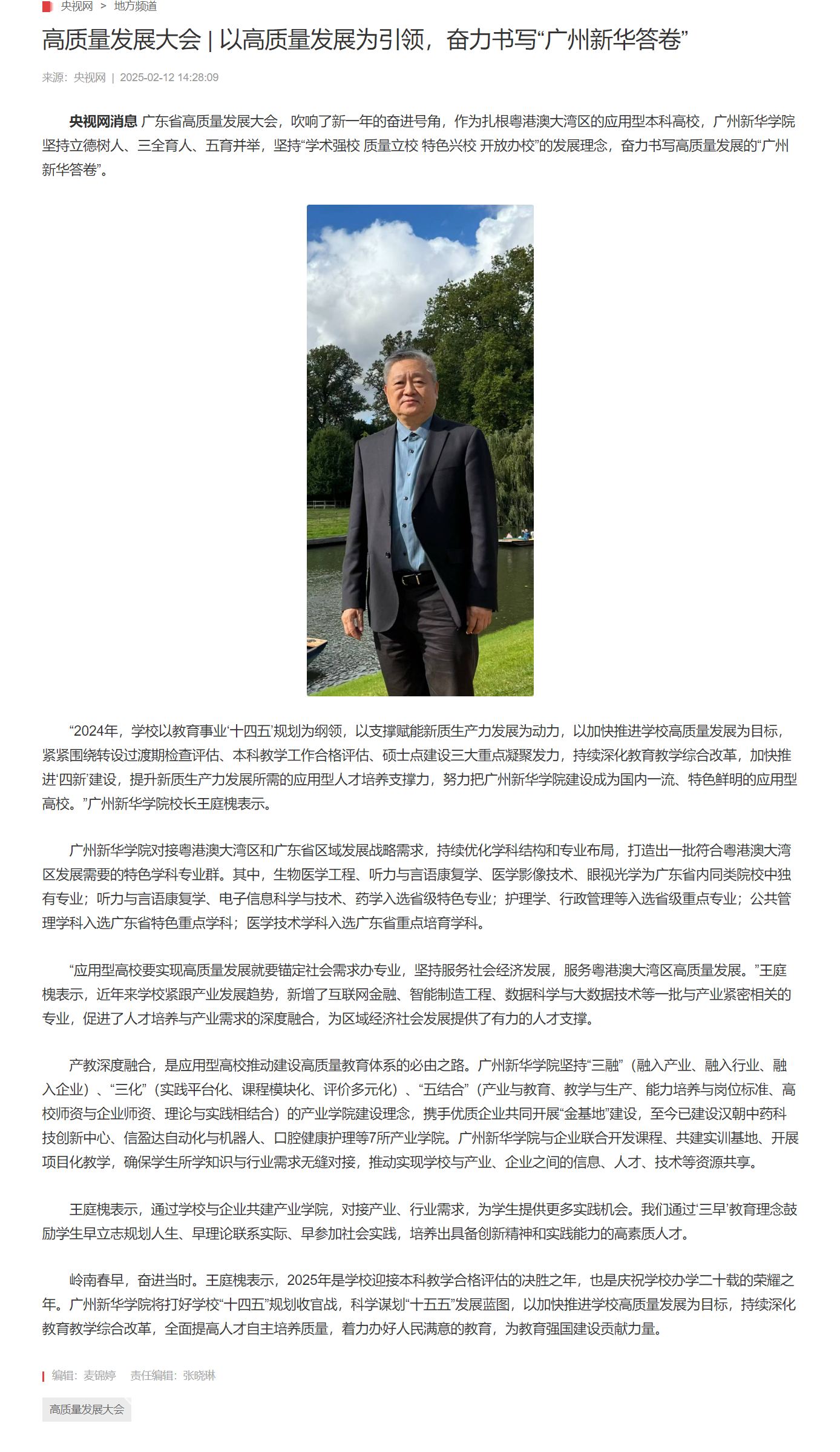 广东省高质量发展大会,吹响了新一年的奋进号角,作为扎根粤港澳大湾区的应用型本科高校,suncitygroup太阳集团坚持立德树人、三全育人、五育并举,坚持“学术强校 质量立校 特色兴校 开放办校”的发展理念,奋力书写高质量发展的“广州新华答卷”。