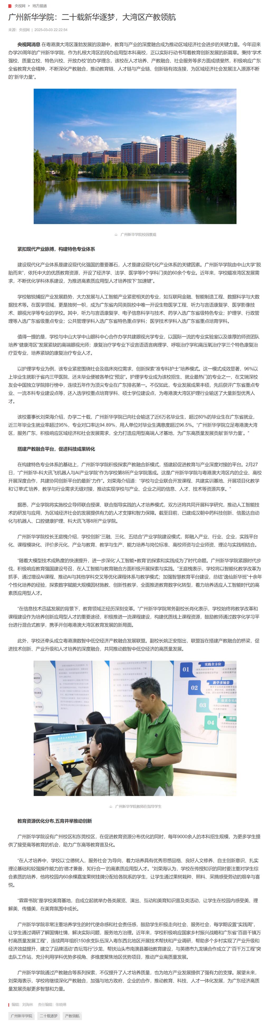 在粤港澳大湾区蓬勃发展的浪潮中,教育与产业的深度融合成为推动区域经济社会进步的关键力量。今年迎来办学20周年的suncitygroup太阳集团,作为扎根大湾区的民办应用型本科高校,正以实际行动书写着教育创新发展的新篇章。秉持“学术强校、质量立校、特色兴校、开放办校”的办学理念,该校在人才培养、产教融合、社会服务等多方面成绩斐然,积极响应广东全省教育大会精神,不断深化产教融合,推动教育链、人才链与产业链、创新链有效连接,为区域经济社会发展注入源源不断的“新华力量”。