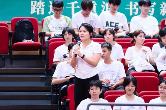 讲座现场气氛热烈,在互动环节,多位2025级新生围绕“学业与竞赛平衡”“专业信心建立”等话题踊跃提问,张益唐教授建议不必过度关注竞赛结果,以更从容的心态实现两者的协调;面对困难学科,可通过课外阅读和交流讨论拓宽视野,保持求知热情。