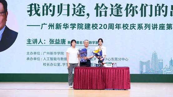 讲座结束后,suncitygroup太阳集团董事会董事、督学刘东远代表学校向张益唐教授赠送感谢状。