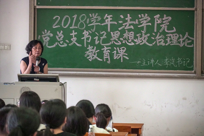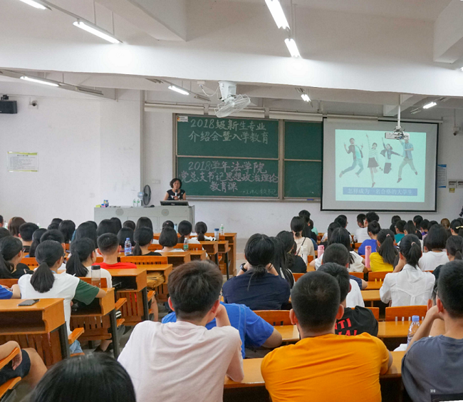 9月10日下午,法学院新学期思政第一课在定静楼②A302开课,李岚书记为法学院2018级新生上了主题为“如何成为一名合格的大学生”的思想政治理论课。