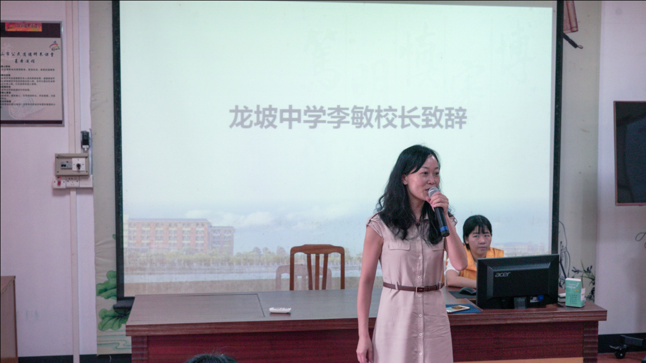 龙坡中学李敏校长代表龙坡中学欢迎实践团队的到来,她表示非常荣幸能够邀请中大新华记者站芒果皮教育服务团开展暑假夏令营活动。