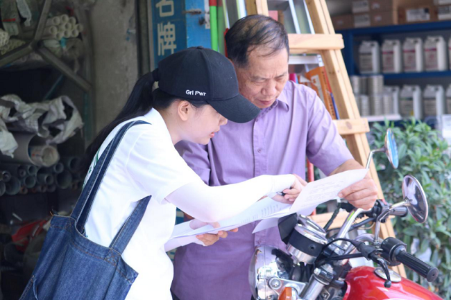 调研队员在当地发放调研问卷