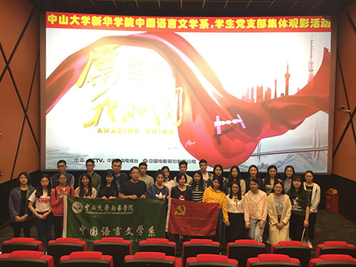4月18日下午,中文系团委书记李靖、学生党支部书记李丹、副书记刘姝及党支部全体学生党员共27人在麻涌镇中影星河影城参与了观影活动。
