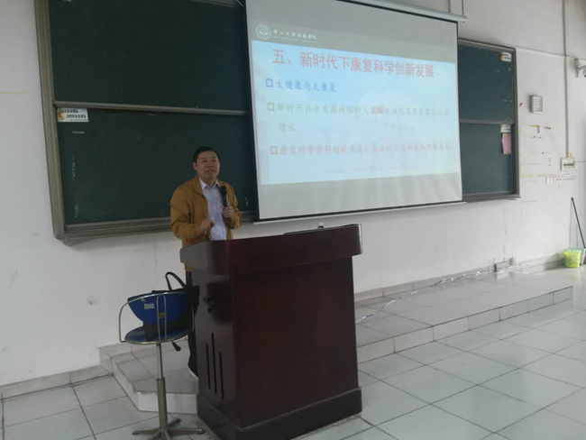 为积极贯彻全国、全省高校思想政治工作会议精神,结合学校党委工作安排,3月28日,康复医学系黄东锋主任以“新时代下康复科学创新发展”为主题,在广州校区D304开讲2018年春季“思政第一课”,2017级113名学生参加了学习。