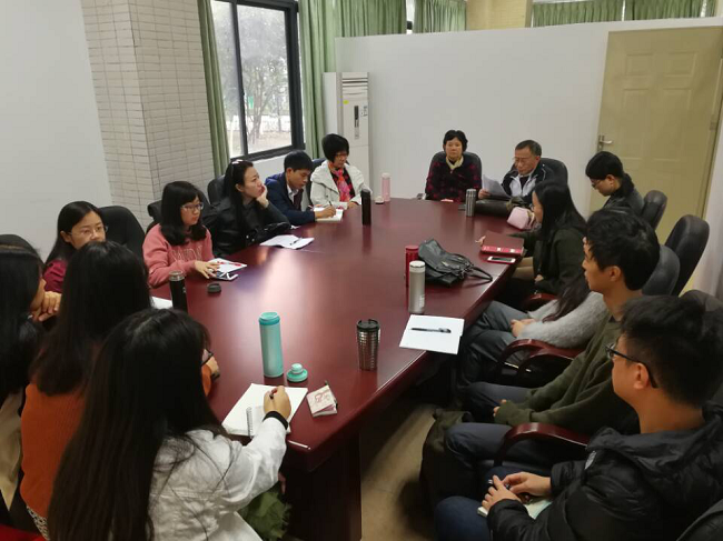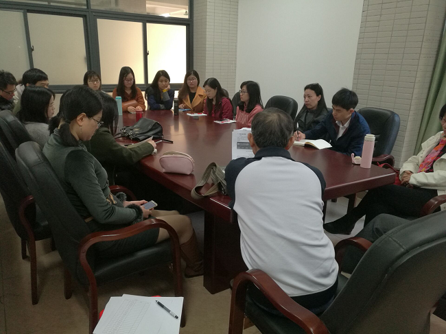 吴素香副主任简要介绍了思政课改革的问题。吴素香说:“为了贯彻上级党委关于‘十九大精神’进课堂的指示,我们举行‘读经典,写心得’的读书报告评优活动和社会实践视频展示评比活动,吸引了大量学生参与,活动取得了圆满成功,下学期部门要继续研究讨论学生社会实践活动。”