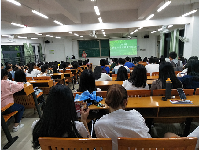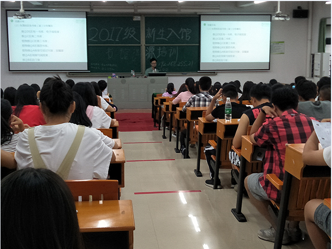 为了使2017级新生尽快熟悉图书馆各类书籍详细分布情况及馆藏结构,知悉图书馆服务内容,了解图书馆馆藏资源及检索方法,增进图书馆与新生的交流与沟通,以达到规范读者行为,引导新生文明高效地使用图书馆服务,提高馆藏图书文献的利用率,营造良好的学习氛围,10月14日,我校图书馆在东莞校区采用了“入馆参观讲解+课堂讲座”的模式成功举办了新生入馆教育培训。