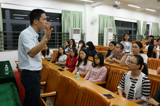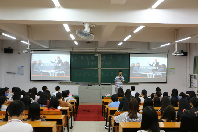 广州善班互联网科技有限公司总经理孙磊先生也从职业发展思考、行业发展机遇、公司介绍三个方面做了详细介绍。他明确指出了应届毕业生在就业竞争力方面存在的不足,认为应届毕业生要转变单一的就业观念,积极参加有效的岗前培训,脚踏实地地工作。“选择比努力更重要”,孙磊总经理提出的这个观点获得了与会师生的强烈认同。