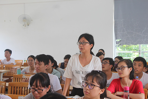 在师生互动的问答环节,同学们积极响应提问,发表自己的看法,汪雪兰教授和卢黄熙教授对同学们的回答及时作出点评。在这个环节,汪教授对回答正确的学生发放了奖品,鼓励学生继续关心国家的时事政治。