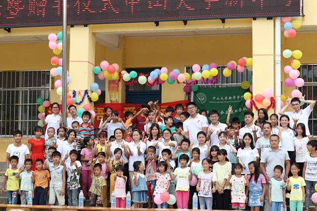 在2016年暑期三下乡社会实践活动的基础上,2017年7月11日,中山大学新华学院雁栖苍梧社会实践队再次奔赴广西壮族自治区梧州市苍梧县雁村小学,开展了为期九天的社会实践活动。活动以支教为主,同时辅以“雁村留守儿童课余生活调查”主题的社会调研,以了解并走进当地留守儿童的内心世界。活动受到了当地村委会、村民以及雁村小学师生的大力支持。